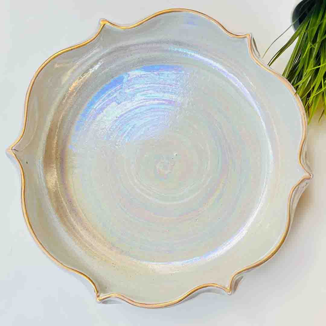Serving pasta deep Platter 35cm with Gold extract on the rim