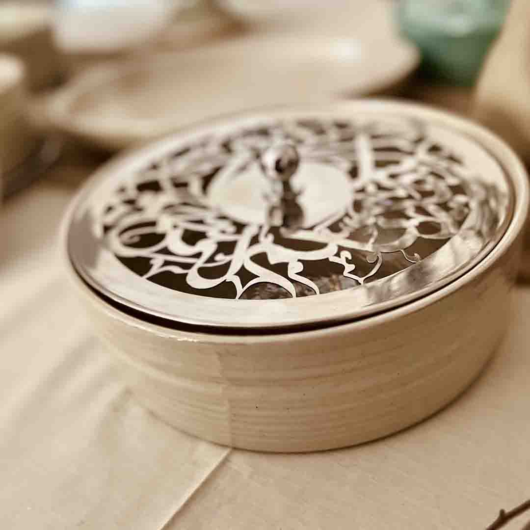 Bram Medium size 25cm Pottery with pure silver calligraphy lid.