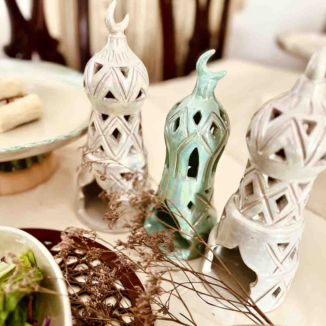 Bring the spirit of Ramadan into your home with this beautifully crafted pottery minaret, designed to add a touch of elegance and tradition to your décor. Available in two sizes – 25 cm & 35 cm, this piece is perfect for creating a warm and festive ambiance, making your space feel even more special during the holy month.
